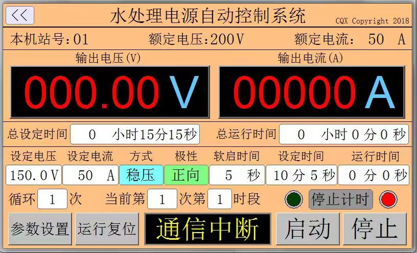 2、具有脉冲电流大、脉冲电压高、配合电极使用,使电极产生高电解电位,从而使反应速度提高5-10倍,节电率高达70-80%;智能电源还具备各种污水配方,用户只需输入污水的基数参数如:电导率、PH值、COD指标等电源自动调整输出参数,大大简化用户操作。